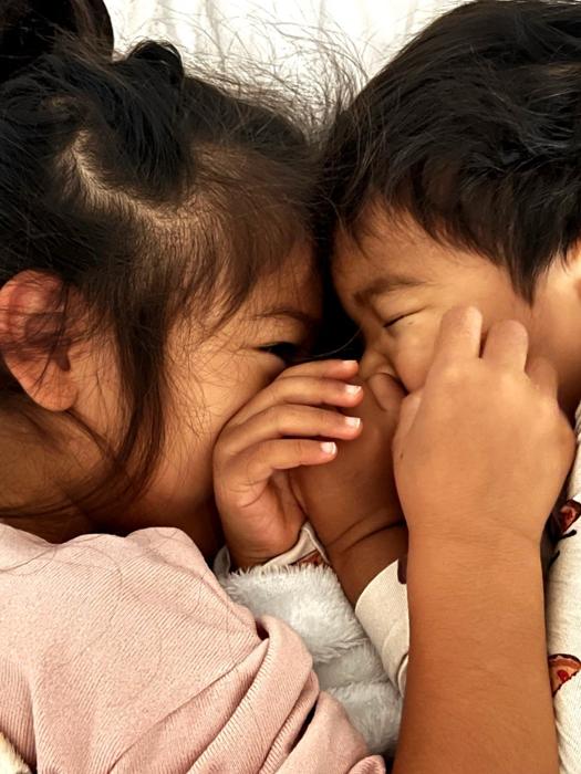 続けて、2歳の三男・杏気(あんげ)くんについては「可愛いイヤイヤ期」と明かし「末っ子だからなのかそんなイヤイヤが可愛くて」とコメント。「お姉ちゃんお兄ちゃんにからかわれながらイヤイヤぷんぷんしてます笑」と長女・莉明(りあ)ちゃんと杏気くんの2ショットとともにブログを締めくくった。