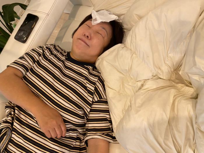 続けて「カゲトラが3時間くらい看病してくれた」といい「良くなってきたぞ」とコメント。「鶴の恩返しかな?」とお茶目に述べ、自身の側で看病をする息子の写真を複数枚公開した。