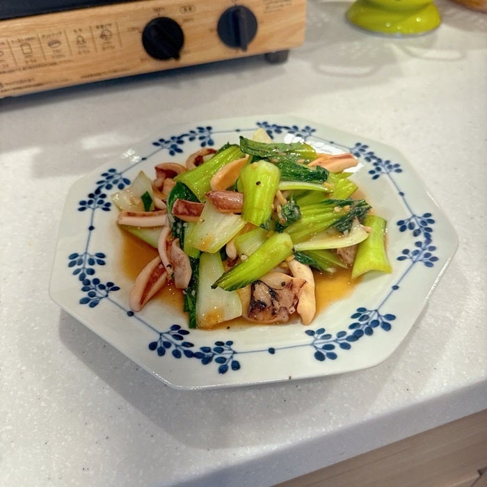 続けて「意外にも?!評判が良かったイカと青梗菜の炒め物です」と料理の写真を公開し「イカは疲れに良いとのことです」とコメント。「他には、卵豆腐、納豆、お味噌汁、白米、パイナップルでした!私はお肌のためにアボカドも」と明かし「今日も暑かった~!」とつづり、ブログを締めくくった。