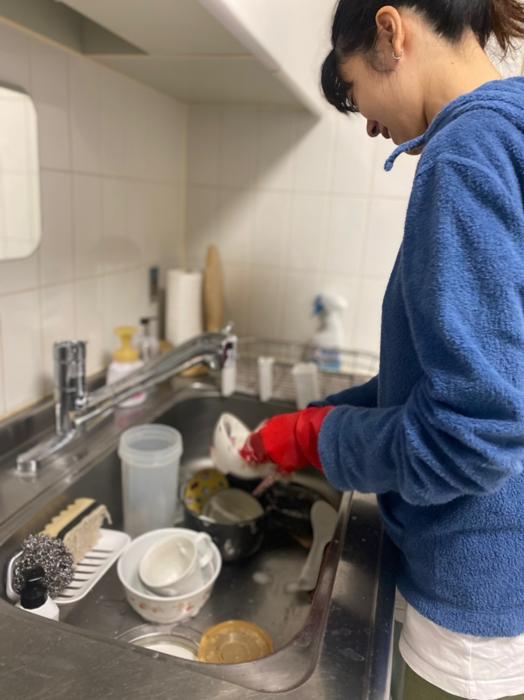 格闘家・才賀紀左衛門が4日に自身のアメブロを更新。洗い物をする彼女の姿を公開した。