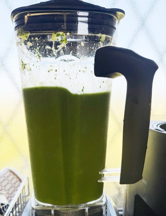 この日、北斗は「お昼ご飯の前に小松菜たっぷりのスムージーを作りました~」と報告。「キウイとかマンゴーを、安い時にコストコで買って冷凍してあるので、冷凍庫にある果物を色々とぶち込んで一気にクラッシュ」と材料について説明した。
