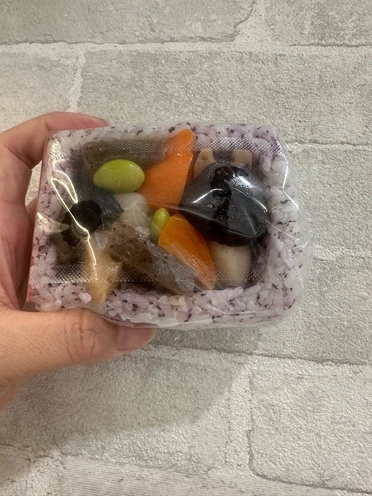 18日には「面白いおむすびが静岡に売ってました」と切り出し「お弁当おむすび。おかずもご飯も一緒に食べられる」と写真を公開。「凄い」とコメントし、ブログを締めくくった。