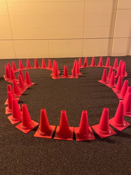 また、エントランスを出て駐車場へ向かう途中で「左手にある赤いコーンの前を通過しようとした時息子がミッキー!!」と言い、赤いコーンで作られたミッキーを見つけたことを写真で報告。「もう、、ディズニー好きってなりますよねー!エントランス出ても帰る寸前までハッピー」といい「さすがです ディズニーありがとう」と大満足な様子でつづった。