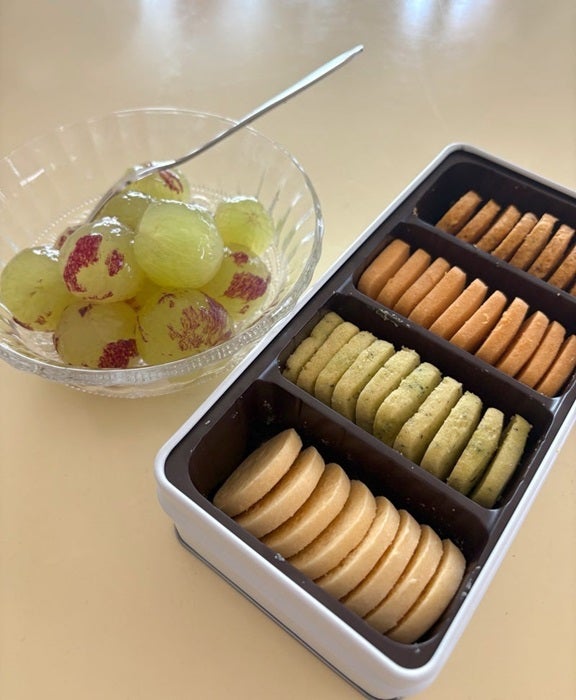 この日、上原は「私のおやつ」というタイトルでブログを更新し「粒がとっても大きいぶどう」とパティスリー『レ・ザンジュ』で購入した「チーズクッキーも」と写真とともに紹介。クッキーについて「甘くない超濃厚なチーズクッキーは、10回以上リピートしてる私の大好物」と明かした。