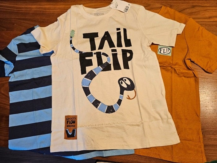 この日、小原は「先行セールでH&MTシャツ3枚799円!」と『H&M』で子ども服を購入したことを報告し「やすっ!かわいっ!」とコメント。「これも3枚799円!」と購入品の写真を公開した。