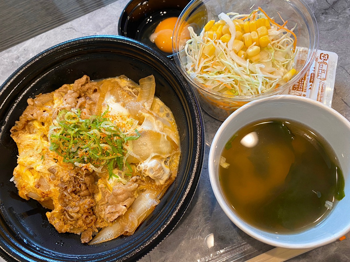 また「秋限定月見牛とじ丼を食べてみよう」とテイクアウトした牛丼を写真で公開。「サラダももちろん購入しました。生卵を入れて混ぜて食べます」と説明し、「やんわりと女性向けな感じの、素敵な丼でした」と感想を述べた。
