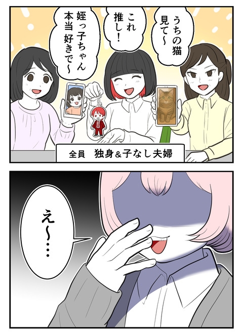 自分と他人は違うことを理解し、心から反省した主人公。SNSの炎上がおさまり穏やかに暮らせるようになったいま、大学時代からの友人たちに「おそろいになる(=ママ友になる)」ことを強要するのではなく、新しい土地でママ友を作ろうとがんばるのだった。