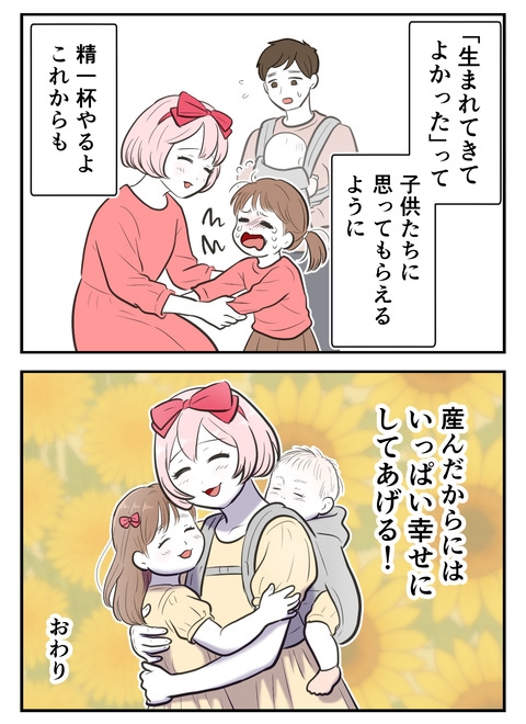 子どもを産まないことを非難されている義弟嫁をかばったり、友人からは「毒親どころか“神親”だ」と言ってもらえたり、すっかり見違えた様子になった主人公。そうしたなかで、なぜ自分を産んだのか母に尋ねたときのことを思いだす…