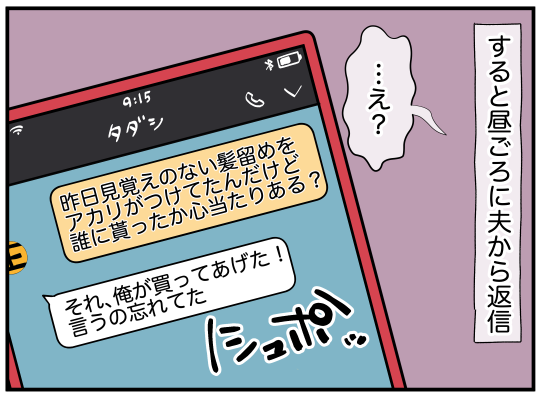 腑に落ちないような気もしますが、髪留めの件はひとまず落着?