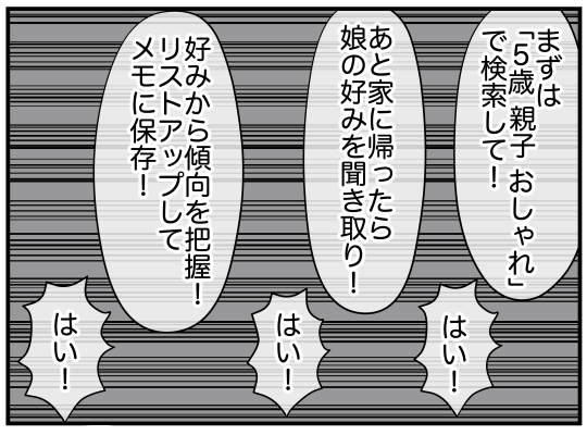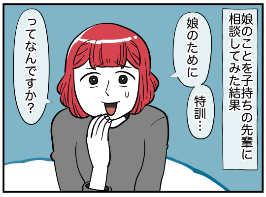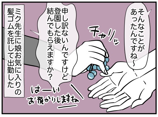 最近、おしゃれに興味津々な娘。これまでツインテールかポニーテールで登園していたが、その日の朝は「三つ編みをしてほしい」と言いだす。自分のヘアアレンジもほとんどしたことがなかった主人公は当然戸惑うが、可愛い娘のために挑戦するのだった…