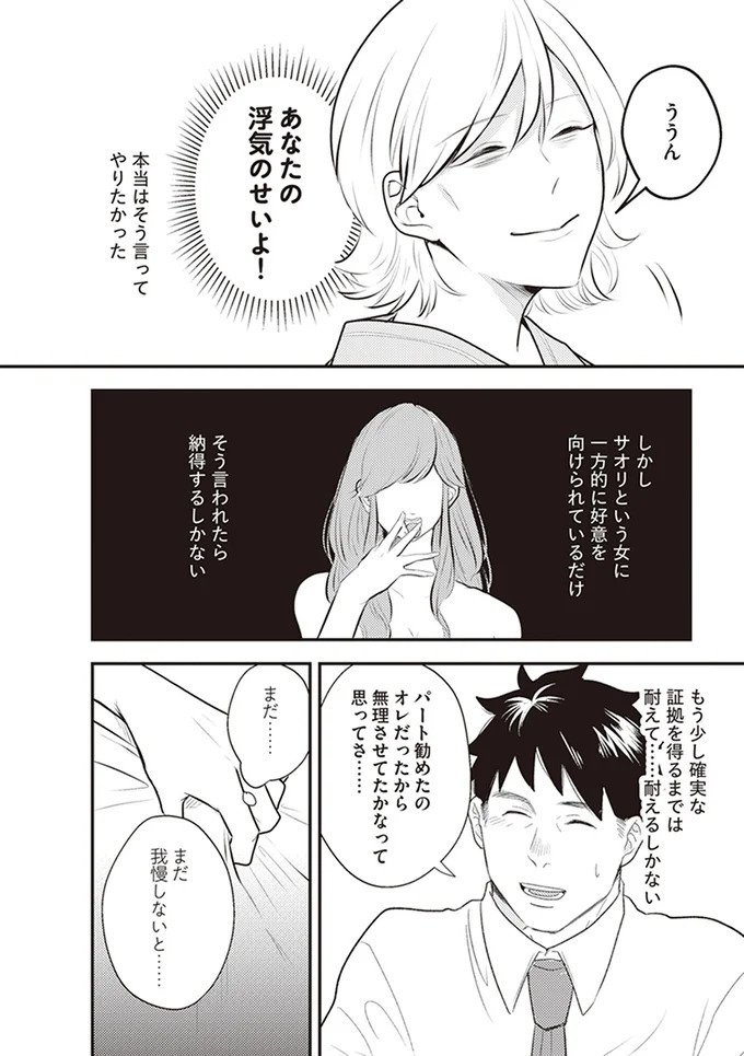 遅れてお見舞いにやってきた夫はどこか気まずそうに、心労の原因を”パート”に求めようとします。そんなわけないって、自分でもどこでか気付いてるんじゃ…?