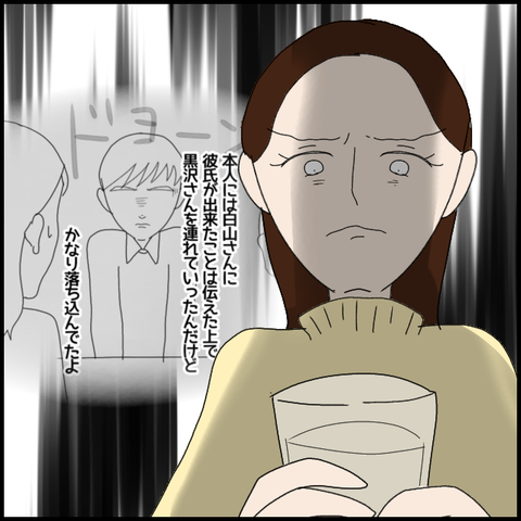 これは黒沢さんの彼氏が悪いですよね。いくら白山さんに未練があるといっても、付き合い始めた以上は黒沢さんに誠実に向き合うべきです。