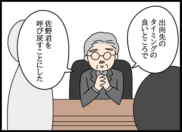 サトコの父親である社長は、頃合いを見て佐野を本社に戻すと言ってくれています。