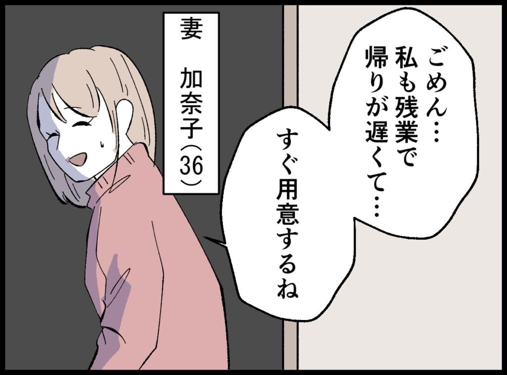 そんな夫の小言を聞き流していたそのとき、「聞いてるの!?」と突然距離を詰められ、慌てて夕飯の支度に向かう妻。