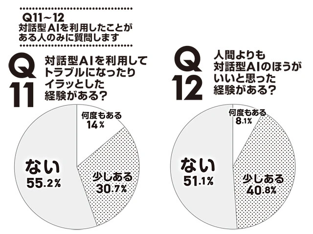 と回答。利用したことがある人の半数近くが対話型AIで困った経験があるという結果に。