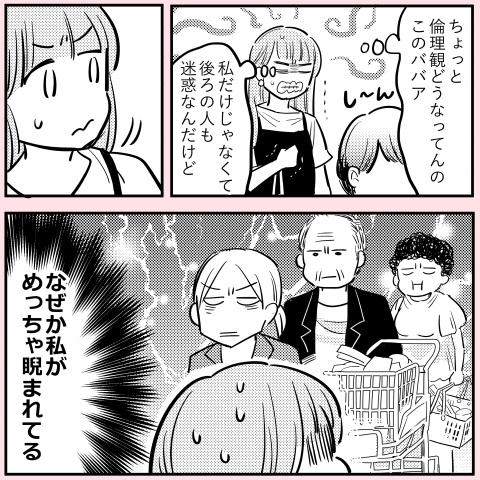 主人公がスーパーのレジで順番を待っていると、当然のように横から割り込んでくる一人の女性が。勇気を出して注意した主人公でしたが、相手は反省するどころか居直る始末。さらに恐ろしいのは周囲の反応でした。トラブルを避けたいのか、冷淡な視線は「騒ぎを起こした」主人公に向けられます。