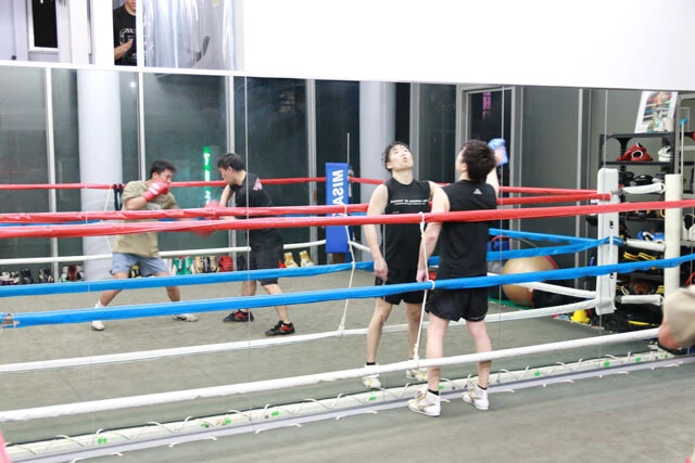 スパーリング終了後、拳四朗は休むことなく、そのままリングでミット打ちを始めた。構えるのは加藤ではなく、若手トレーナーだった。
