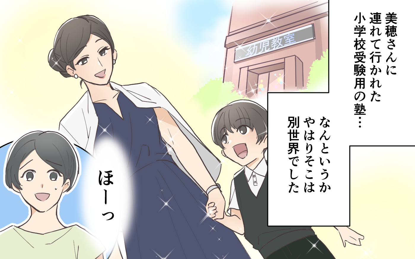ママ友のお誘いで、小学校受験用の塾にやってきた桃子さん。
