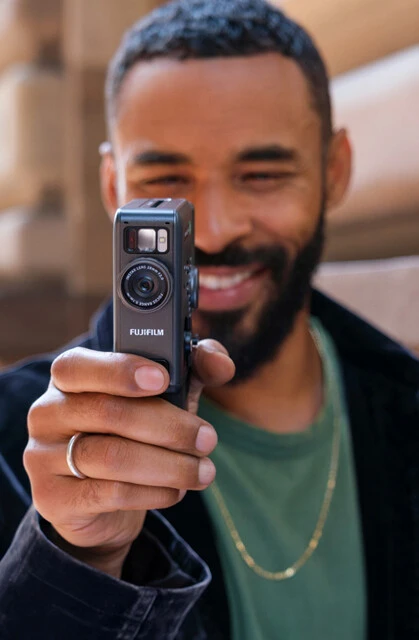 昭和時代の8mmカメラを彷彿させるレトロなデザインを採用したインスタントカメラ。撮影した静止画を本体でカードサイズのチェキとして即プリントでき、専用アプリでスマホに転送することも可能。
