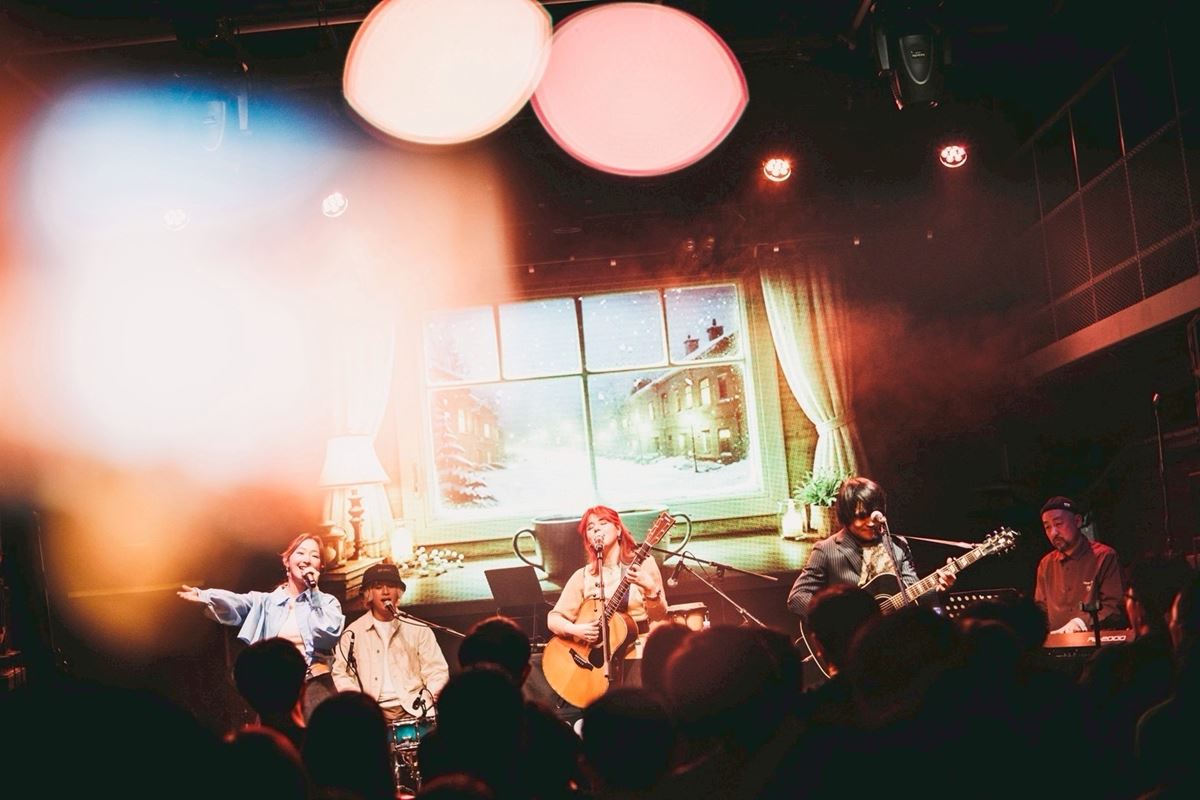 mikakoのギター弾き語りではじまった「ゆっくり手を離して」では、突如、「もう一回やらせて!」と本人が吐露する一幕も。トラブルさえもライブの一部として抱きしめるような、やさしい空気感でいっぱいのフロア。こうして、スクリーンに映し出される歌詞とともに、スローバラードの名曲が丁寧に届けられていく。