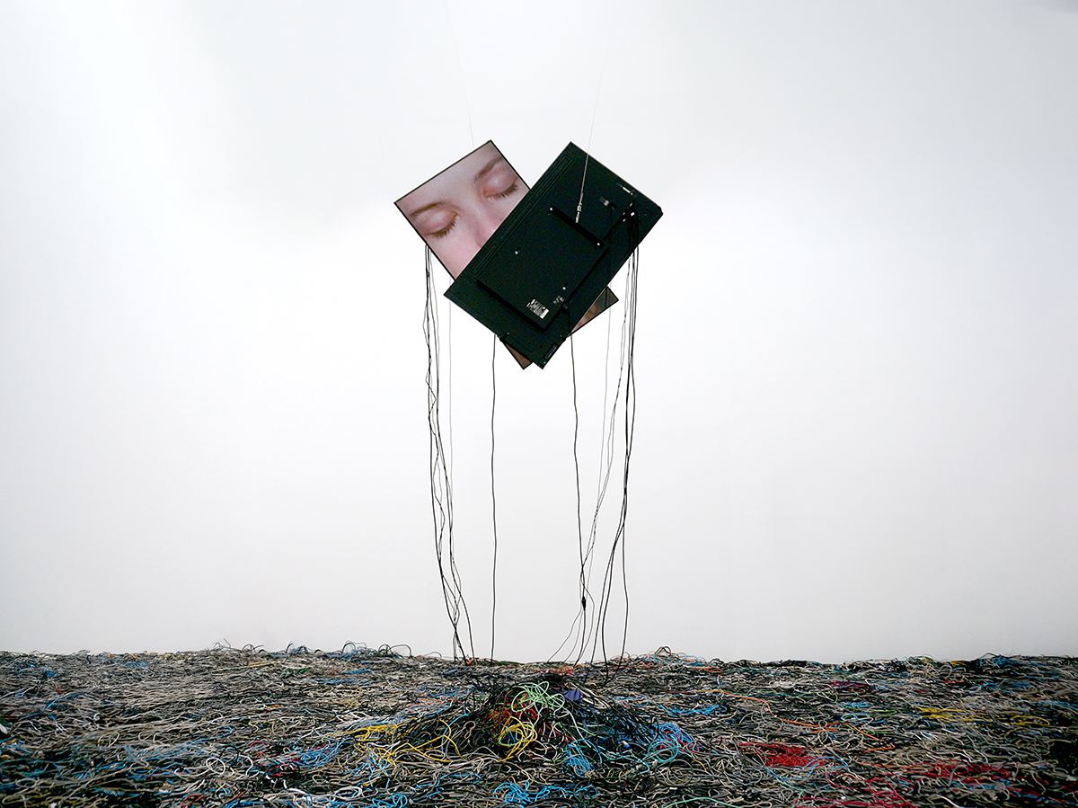 右:エキソニモ 《Kiss, or Dual Monitors》(2017)東京都写真美術館蔵[参考図版]