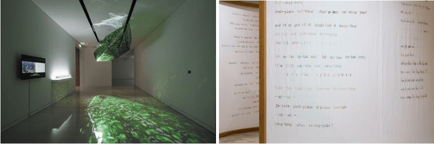 左:張恩滿《蝸牛樂園三部曲̶啟航或終章》2021年高雄市立美術館蔵、右:侯怡亭《所有的小姐 Sóo-ū -ê sió-tsiá》2015年作家蔵