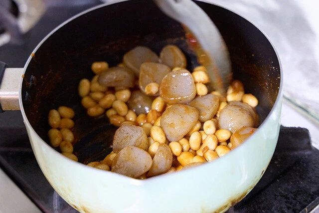 ②3、4分中火でサッと煮込む(*強火だと焦げやすいので、中火より少し弱めの火加減)