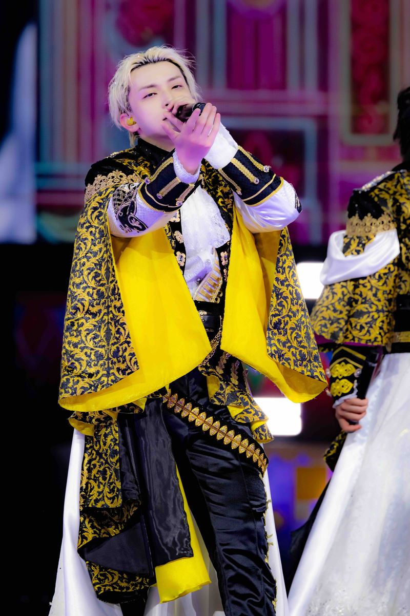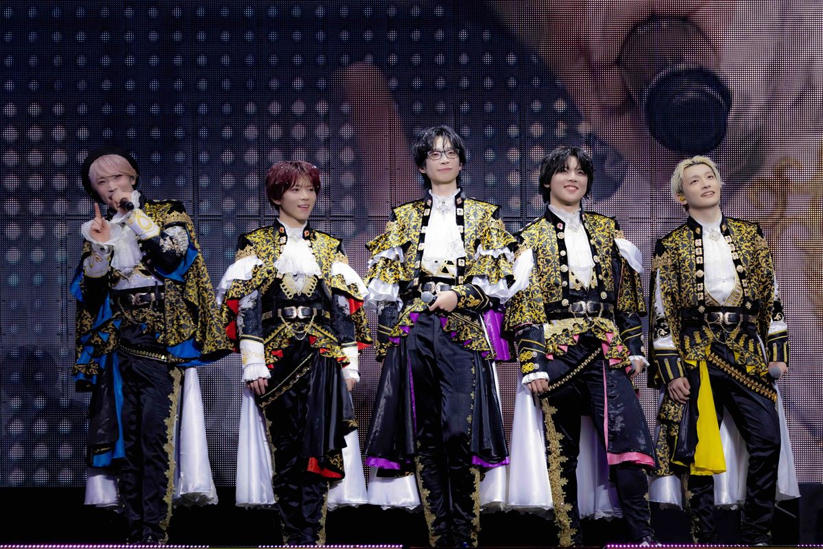 「みなさん、騒ぐ準備できていますか?ヴィーナス!ゼウス!」と呼びかけると、「うぉおおおお!!!」ゼウスの声が大きく響く。小さな子供たちがグッズのハッピを着ている姿を多く見かけたが、男性ファン(ゼウス)の姿も確かに目立っていた。女性ファン(ヴィーナス)の声援と共に、この野太い声援もまたメンバーにとって大きな励みになっただろう。「この調子で盛り上がっていきましょう!」ようたの掛け声から世界旅行への出発アナウンスが流れる。「シートベルトの代わりにペンライトの準備はいい?」たいがの声掛けに色とりどりのペンライトが揺れ、ここからは怒涛のメドレー。