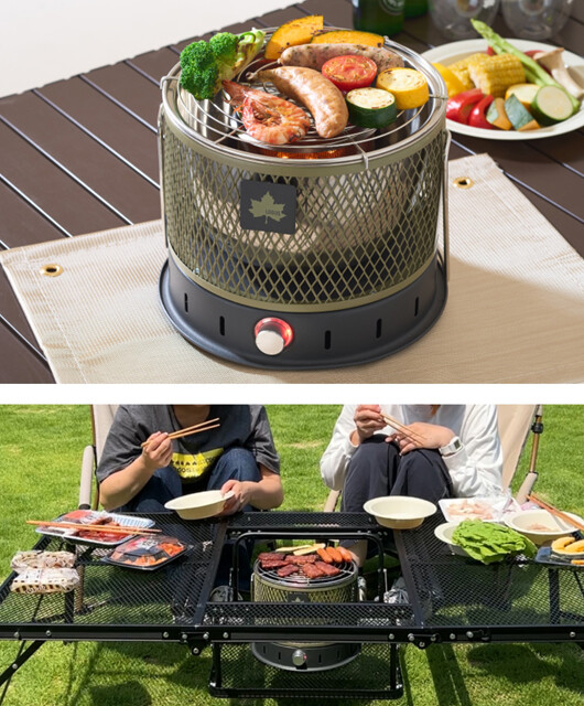 「アイアンメッシュ 3FD BBQテーブル 13070-BC」(2万9700円)に設置して本格的なキャンプアイテムとしても大活用できますよ!