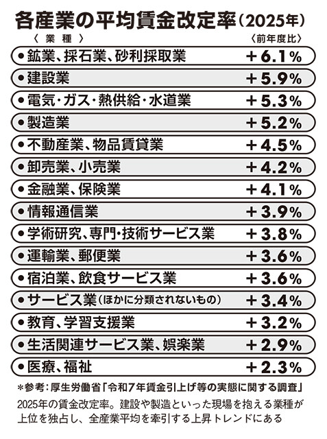 【表】各産業の平均賃金改定率(2025年)